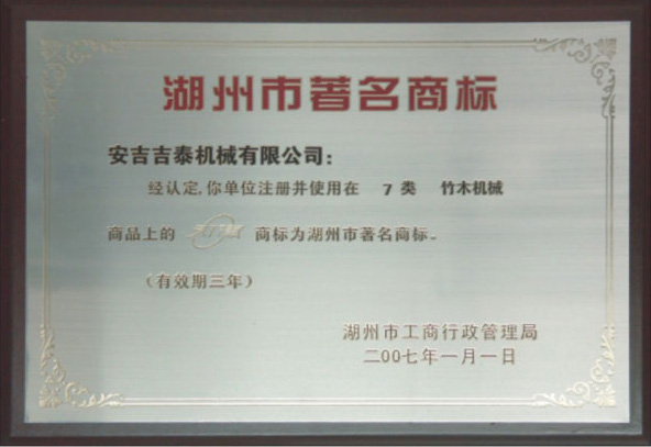 “天賦”牌機(jī)械產(chǎn)品,被評(píng)為浙江省湖州市名牌產(chǎn)品